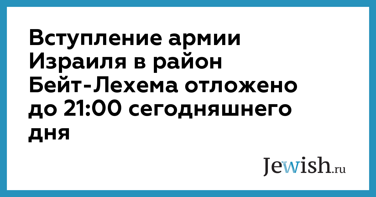 Вступление армии Израиля в район Бейт-Лехема отложено до 21:00 сегодняшнего дня