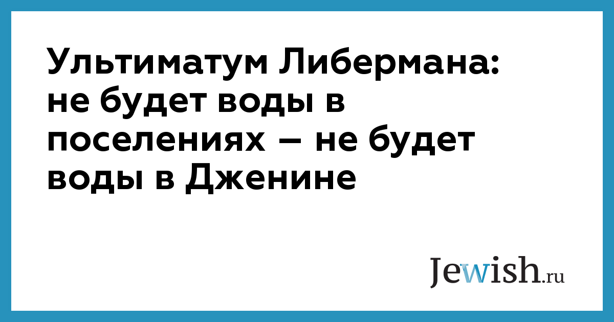Еврейские поселения Ганим и Кадим, расположенные в Самарии рядом с палестинским городом Дженин, долгое время страдают от отсутствия воды, сообщает радиостанция "Седьмой канал". Бедственное положение, в котором оказались жители этих населенных пунктов, возникло стараниями окопавшихся в Дженине боевиков “Танзим”, решивших перекрыть водопровод и таким образом сделать жизнь поселенцев невыносимой. Израильская армия могла бы быстро решить эту проблему, но, как известно, Дженин относится к зоне “А”, куда израильской армии вход без особого разрешения политического руководства страны воспрещен. Ввиду остроты сложившейся ситуации министр национальной инфраструктуры Авигдор Либерман распорядился организовать встречу между руководителем израильского Управления водных ресурсов Шимоном Талем и его палестинским коллегой. На встрече, состоявшейся 21 августа, палестинцам был предъявлен ультиматум: если с 23 августа подача воды в поселения не будет возобновлена, без воды останется весь Дженин. Технически проведение этой операции вполне возможно — город снабжается водой из скважин, принадлежащих Израилю. “Мы не хотим прибегать к крайним мерам, — заявил Авигдор Либерман, — Но и не можем допустить подобного произвола по отношению к жителям Ганим и Кадим. Если палестинцы отвергнут ультиматум – мы бы без колебаний выполним свое обещание”.