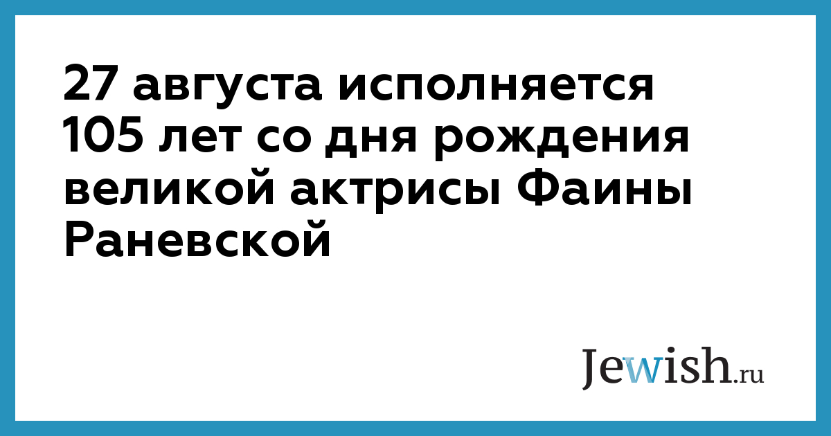 27 августа исполняется 105 лет со дня рождения великой актрисы Фаины Раневской