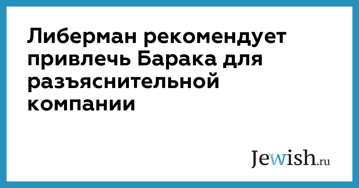 Либерман рекомендует привлечь Барака для разъяснительной компании