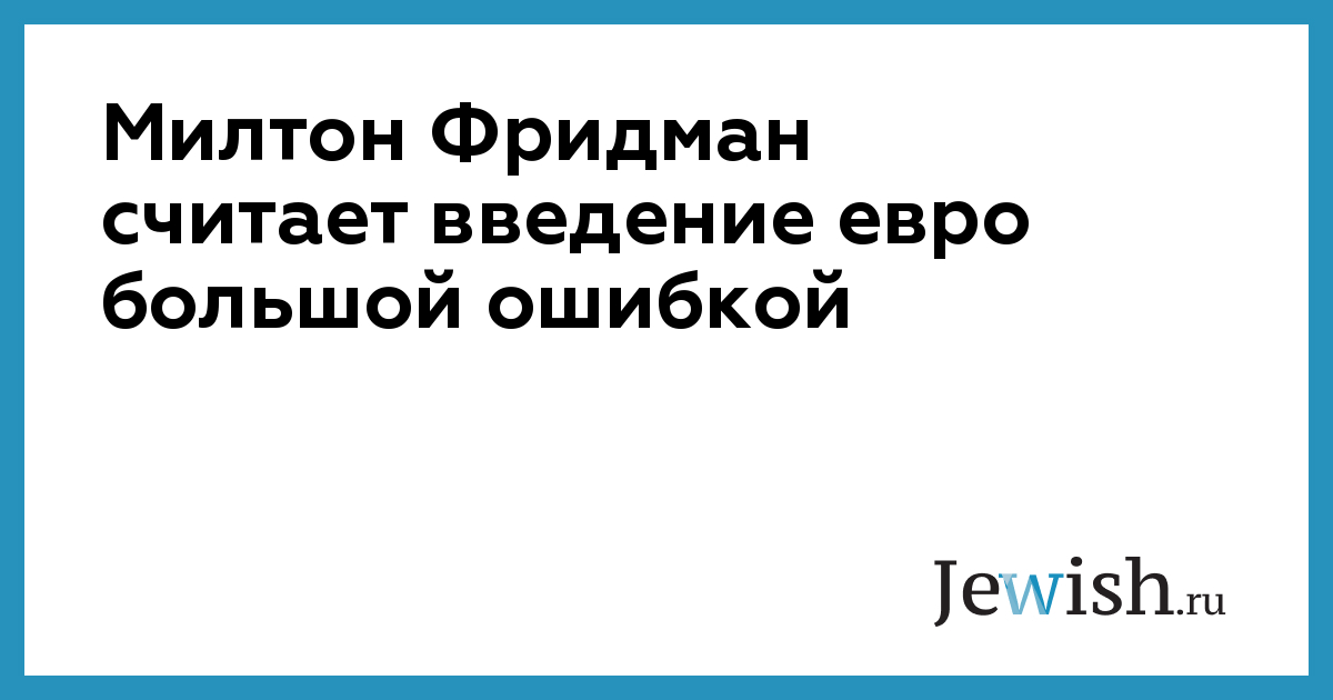 Милтон Фридман считает введение евро большой ошибкой