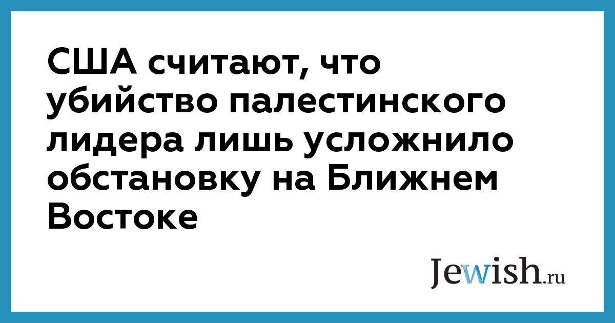 США считают, что убийство палестинского лидера лишь усложнило обстановку на Ближнем Востоке