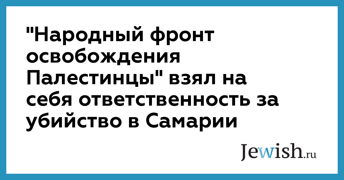 "Народный фронт освобождения Палестинцы" взял на себя ответственность за убийство в Самарии