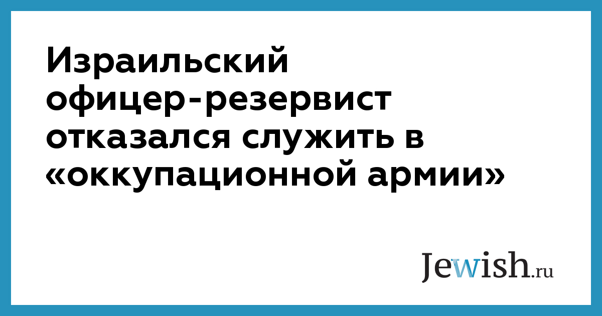 Израильский офицер-резервист отказался служить в «оккупационной армии»