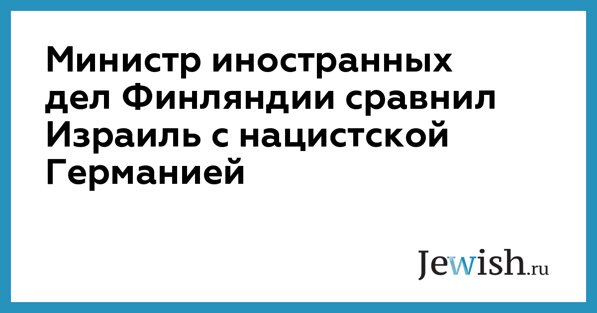 Министр иностранных дел Финляндии сравнил Израиль с нацистской Германией