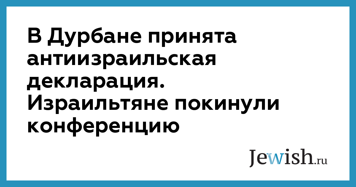 Жесткая антиизраильская декларация, добавившая напряженности в конфликт на Ближнем Востоке, была принята на конференции по вопросам расизма в воскресенье. Этот документ шокировал израильскую делегацию, которая в знак протеста покинула зал.