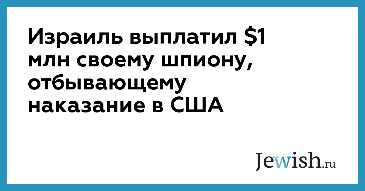 Израиль выплатил $1 млн своему шпиону, отбывающему наказание в США