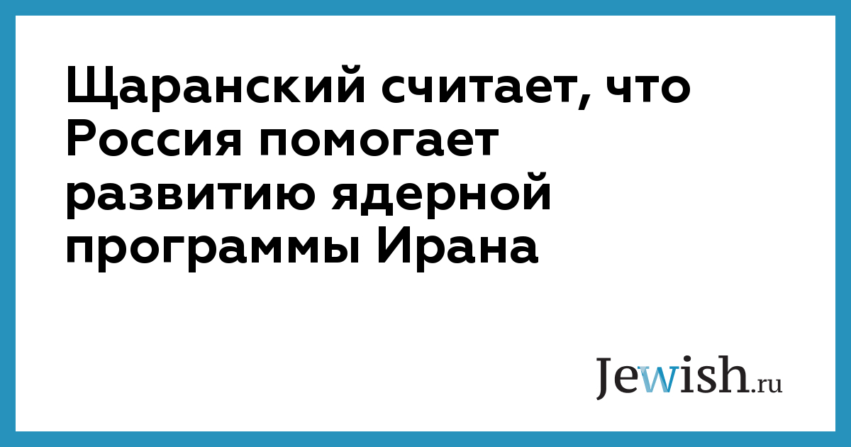Щаранский считает, что Россия помогает развитию ядерной программы Ирана