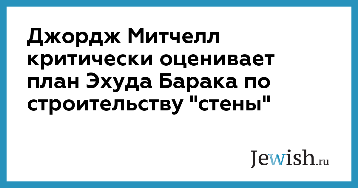 Джордж Митчелл критически оценивает план Эхуда Барака по строительству "стены"