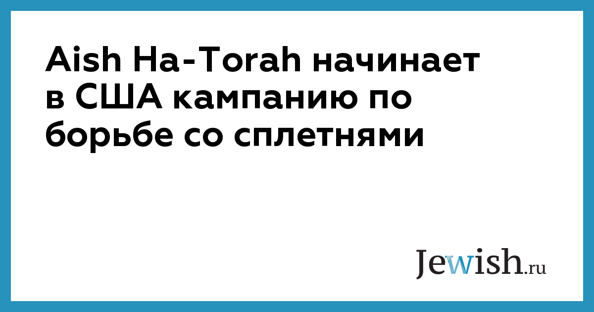 Aish Ha-Torah начинает в США кампанию по борьбе со сплетнями