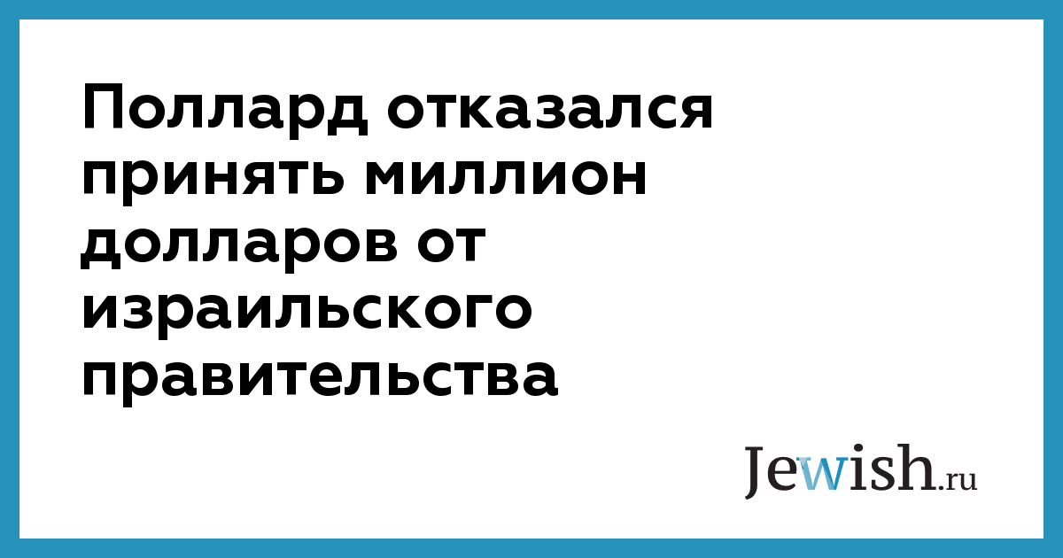 По поступившим сегодня сведениям, Поллард предпочитает, чтобы еврейское государство "соблюдало взятые им на себя обязательства" и добивалось его освобождения. Решение о выплате Полларду столь значительной суммы было принято в Израиле на самом высоком уровне. Тем самым израильское правительство впервые за многие годы, прошедшие с момента его ареста, косвенно признало, что бывший сотрудник разведки ВМС США являлся агентом "Моссада". Ни один из прежних израильских кабинетов не решался подтвердить, что Поллард тайно действовал в интересах Израиля. Руководство еврейского государства лишь изредка устно просило американскую администрацию о его помиловании. Сам заключенный не раз обращался к израильскому руководству с прошениями официально ходатайствовать перед Вашингтоном о его освобождении.