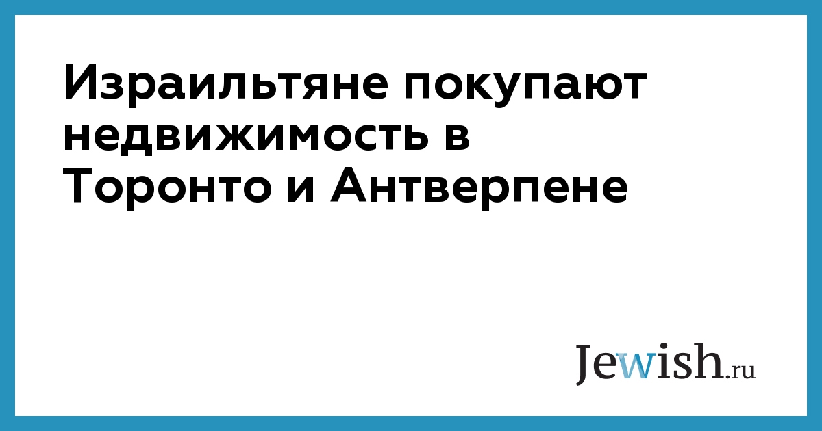Израильтяне покупают недвижимость в Торонто и Антверпене