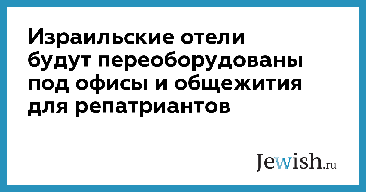 Израильские отели будут переоборудованы под офисы и общежития для репатриантов