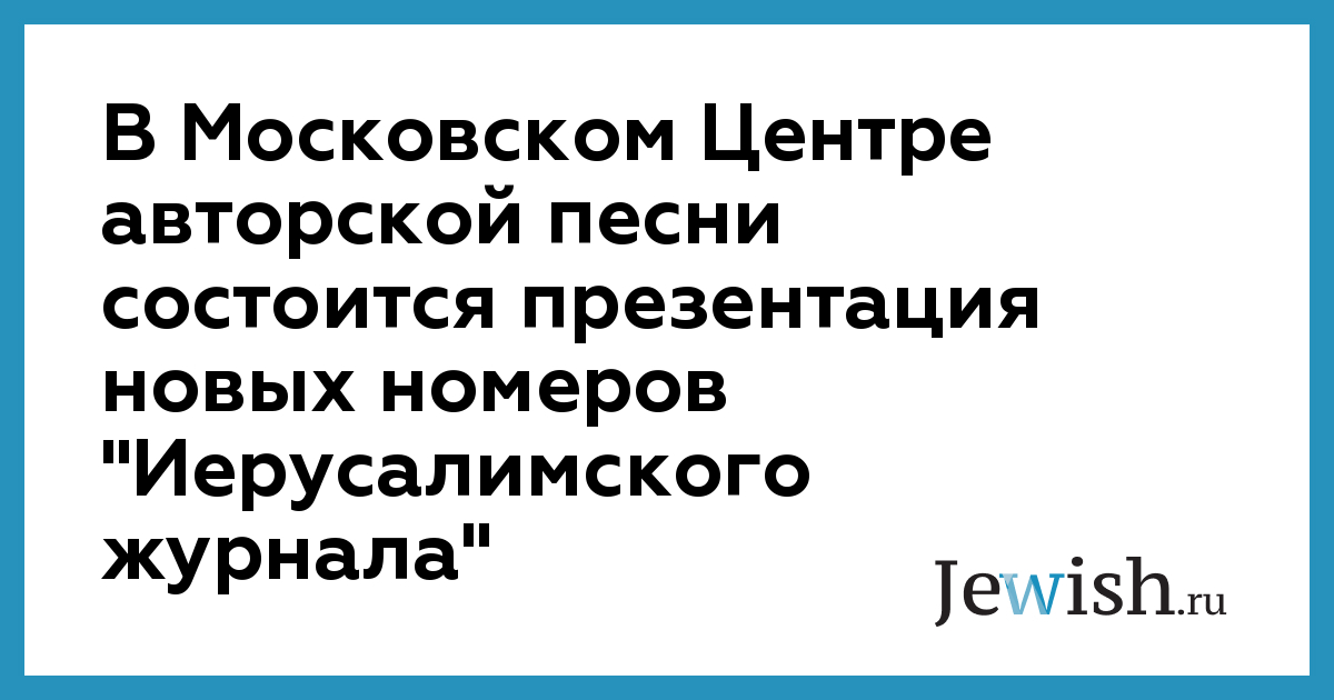 В Московском Центре авторской песни состоится презентация новых номеров "Иерусалимского журнала"