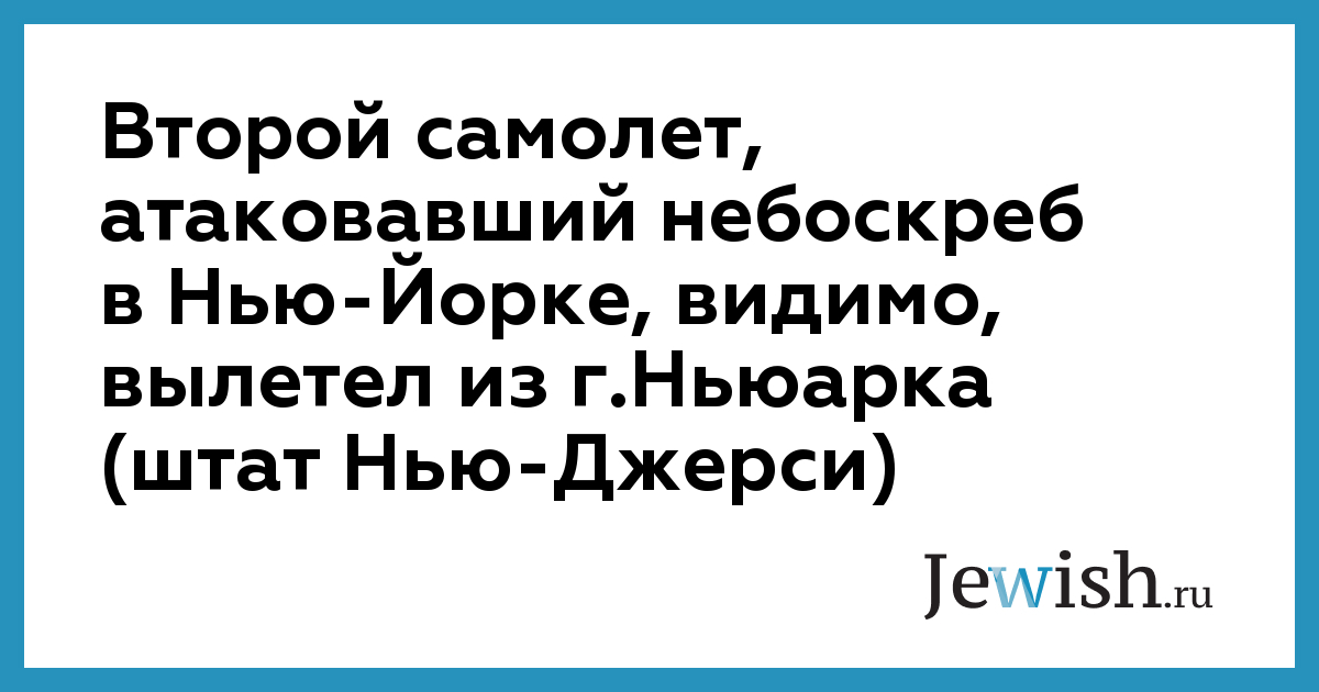 Второй самолет, атаковавший небоскреб в Нью-Йорке, видимо, вылетел из г.Ньюарка (штат Нью-Джерси)