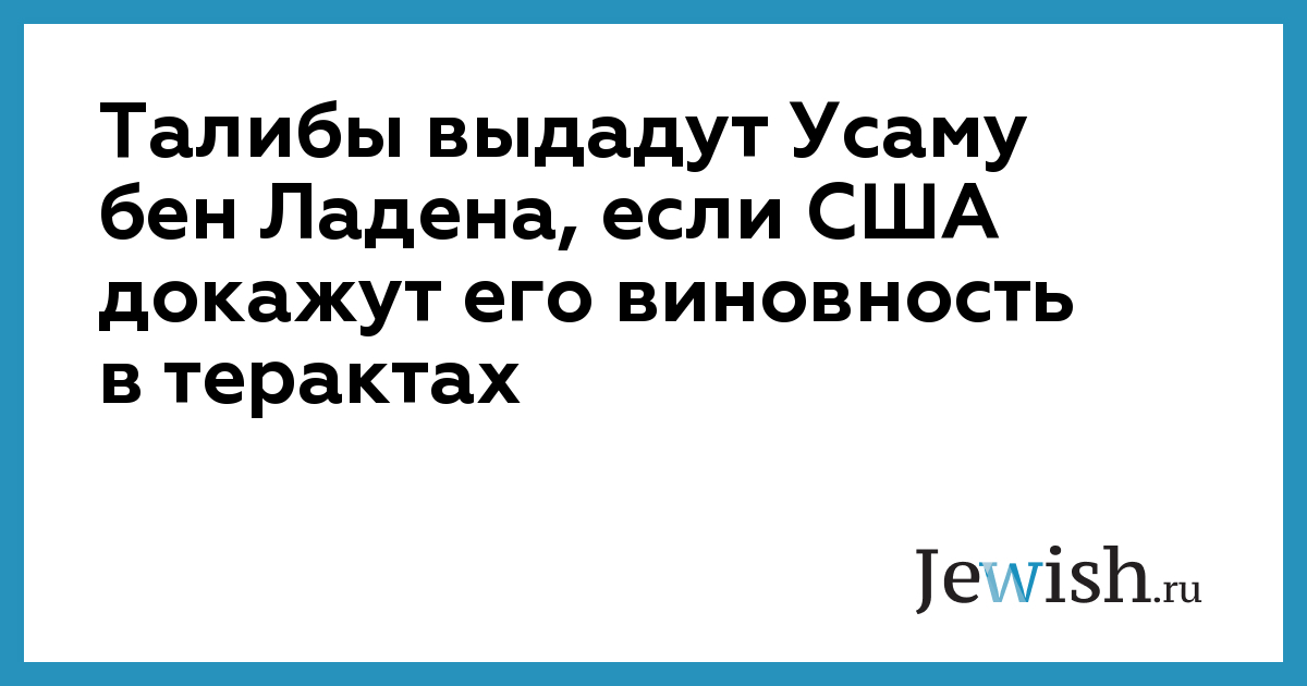 Между тем ранее агентство Reuters передало слова талибского посланника, по словам которого говорить о том, что Афганистан мог бы экстрадировать террориста №1 Усаму бен Ладена, было бы "преждевременно".