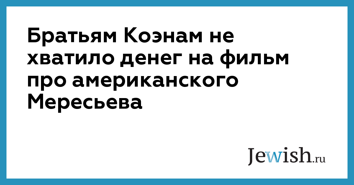 Братьям Коэнам не хватило денег на фильм про американского Мересьева