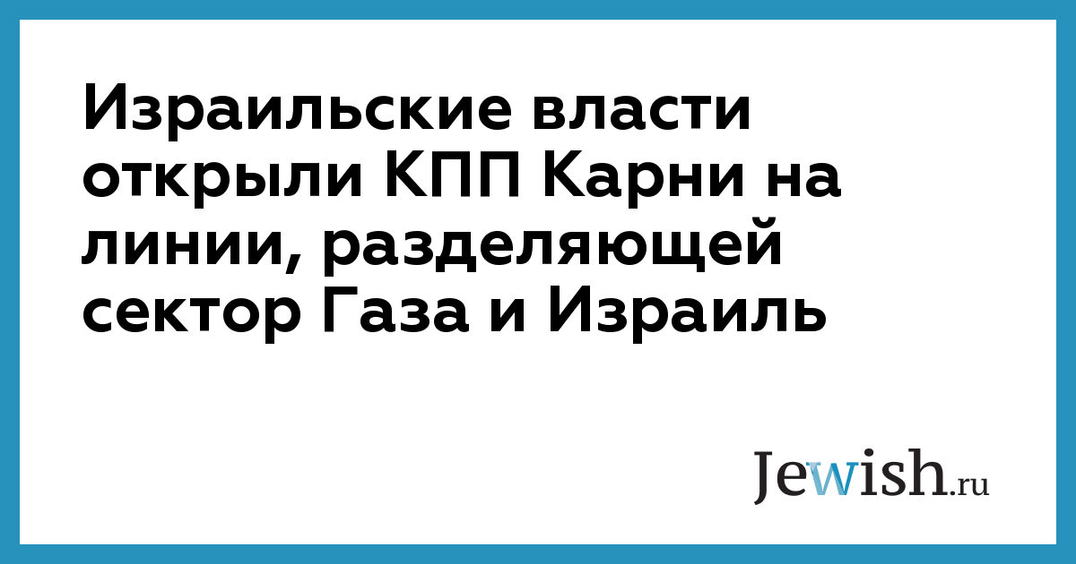 Израильские власти открыли КПП Карни на линии, разделяющей сектор Газа и Израиль
