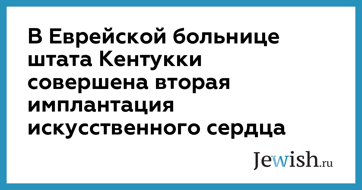В Еврейской больнице штата Кентукки совершена вторая имплантация искусственного сердца