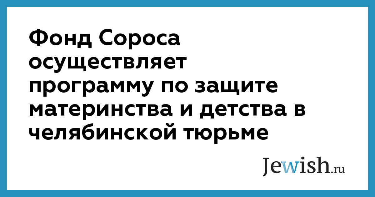 Фонд Сороса осуществляет программу по защите материнства и детства в челябинской тюрьме