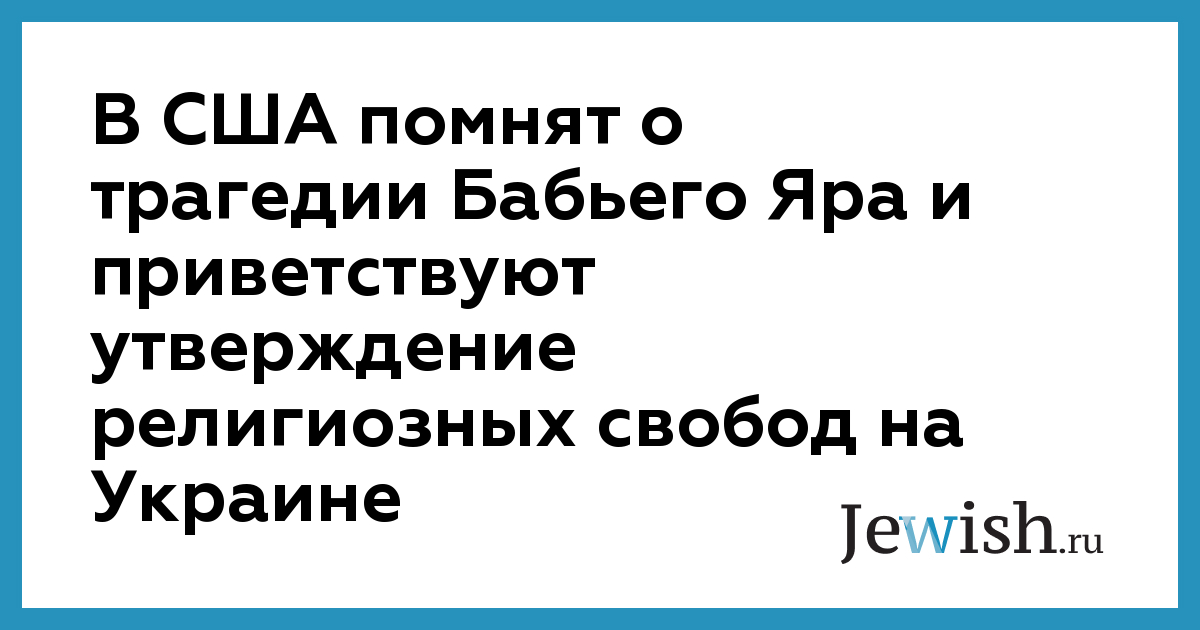 В США помнят о трагедии Бабьего Яра и приветствуют утверждение религиозных свобод на Украине