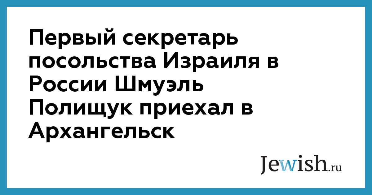 Первый секретарь посольства Израиля в России Шмуэль Полищук приехал в Архангельск
