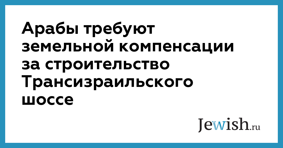 Арабы требуют земельной компенсации за строительство Трансизраильского шоссе