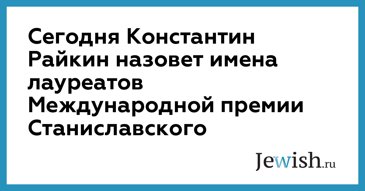 Сегодня Константин Райкин назовет имена лауреатов Международной премии Станиславского