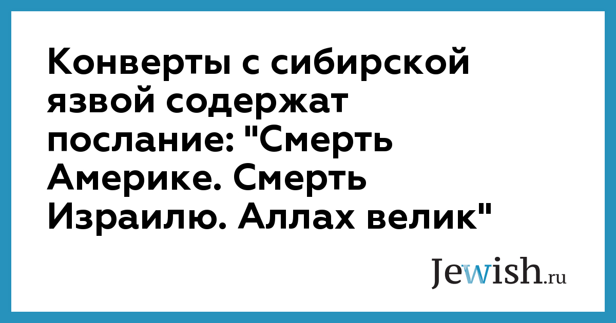Конверты с сибирской язвой содержат послание: "Смерть Америке. Смерть Израилю. Аллах велик"