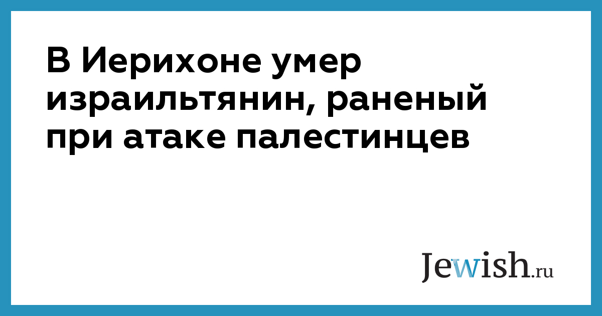 В Иерихоне умер израильтянин, раненый при атаке палестинцев