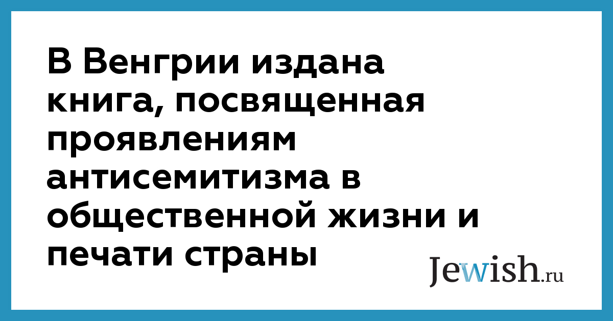 В Венгрии издана книга, посвященная проявлениям антисемитизма в общественной жизни и печати страны