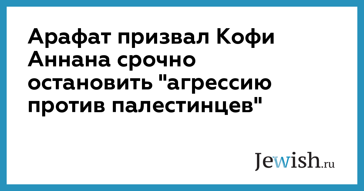 Этот призыв прозвучал в ходе телефонного разговора с генеральным секретарем ООН по инициативе последнего. Арафат и Аннан обсудили обстановку на палестинских территориях после новой израильской военной эскалации и вторжения израильских войск на территорию Палестинской национальной администрации в ряде районов.