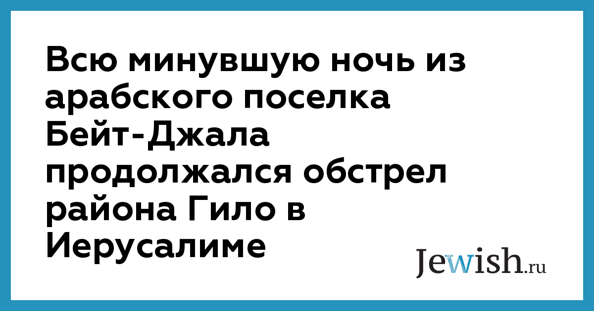 Всю минувшую ночь из арабского поселка Бейт-Джала продолжался обстрел района Гило в Иерусалиме
