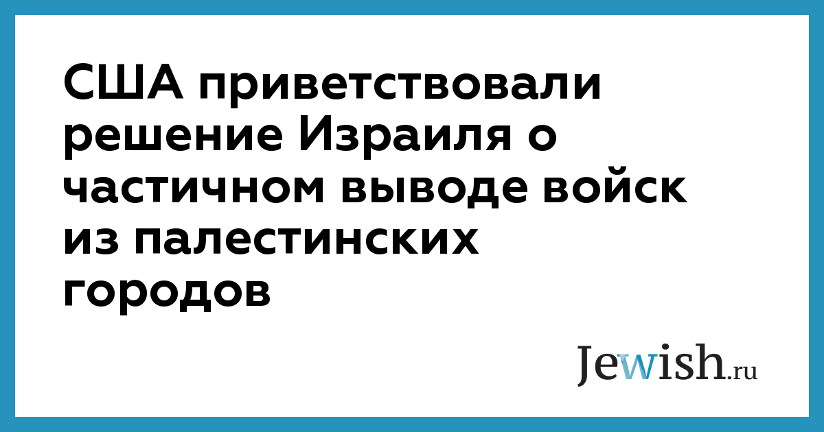 США приветствовали решение Израиля о частичном выводе войск из палестинских городов