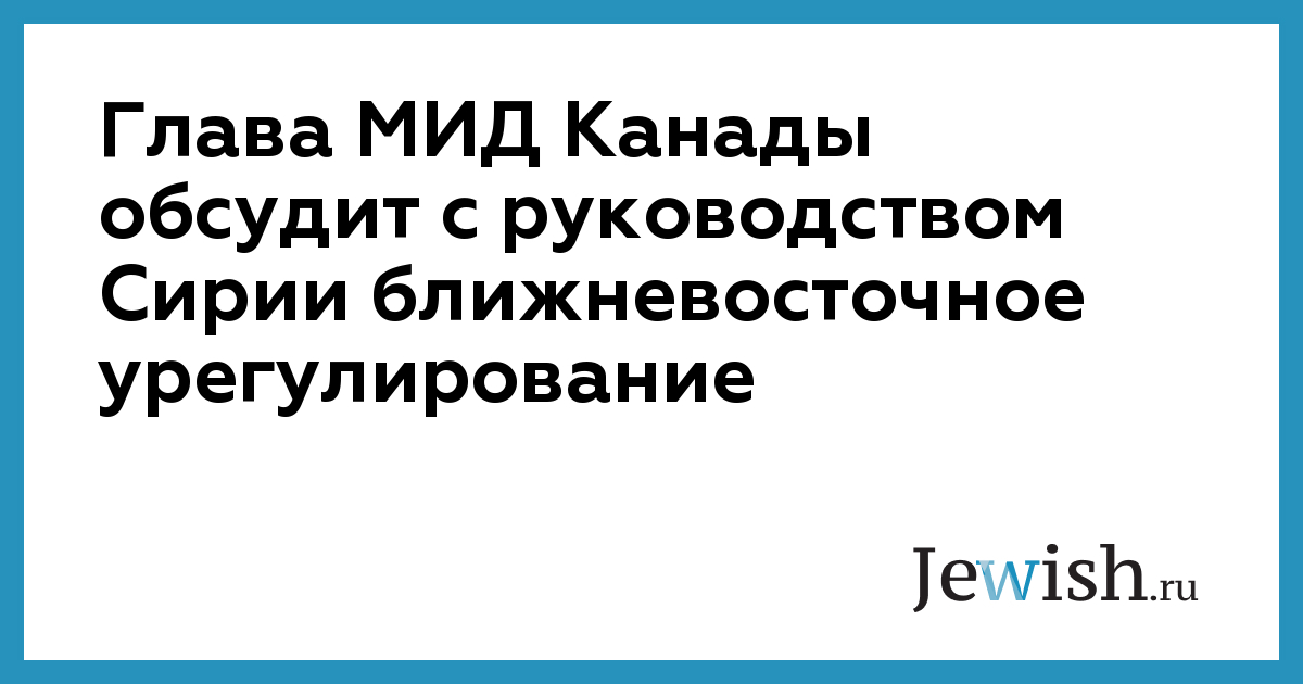 Глава МИД Канады обсудит с руководством Сирии ближневосточное урегулирование