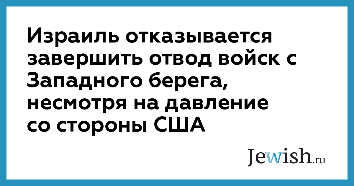 Израиль отказывается завершить отвод войск с Западного берега, несмотря на давление со стороны США