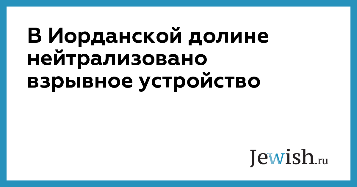 В Иорданской долине нейтрализовано взрывное устройство