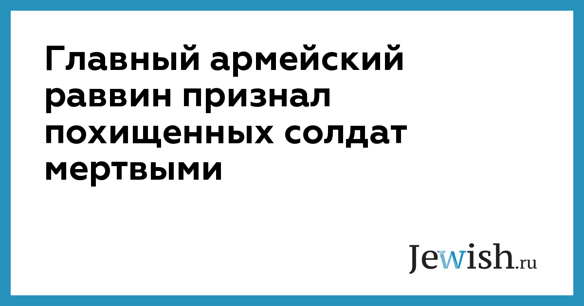 Главный армейский раввин признал похищенных солдат мертвыми
