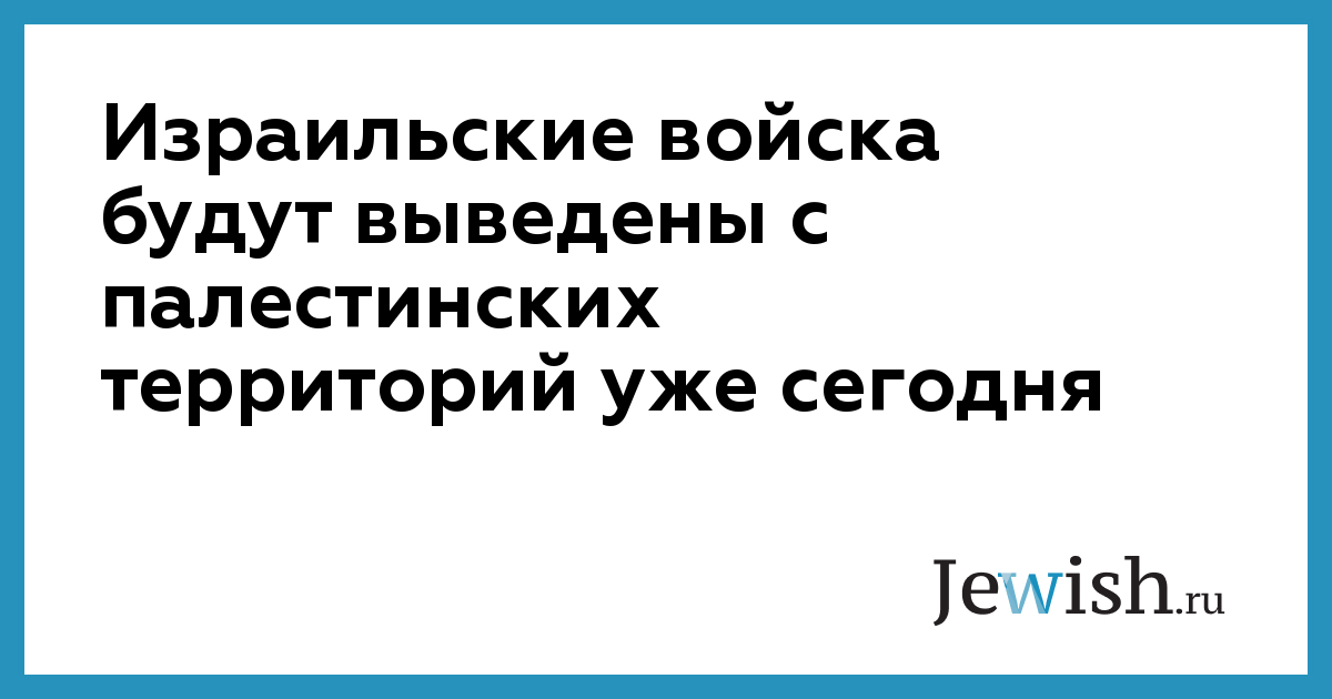 Израильские войска будут выведены с палестинских территорий уже сегодня