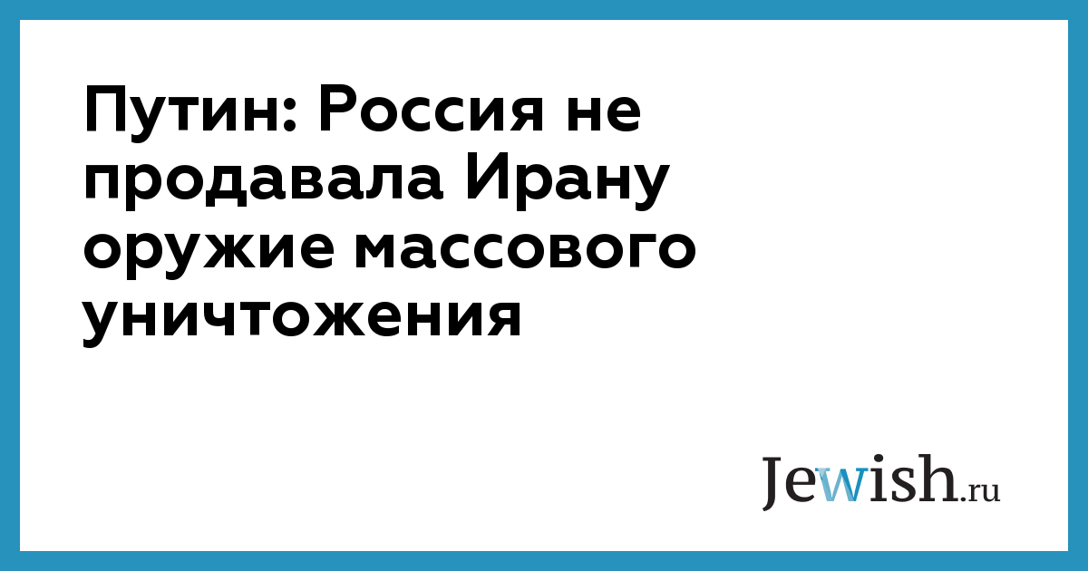 Путин: Россия не продавала Ирану оружие массового уничтожения