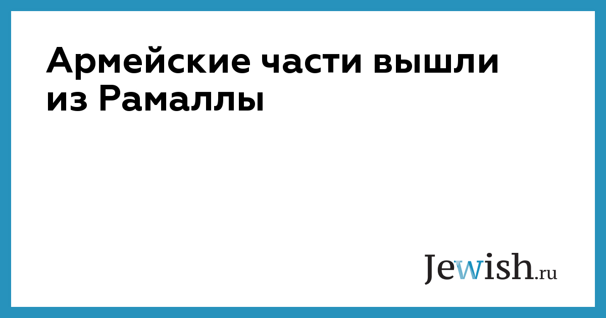 К утру в среду израильские армейские части вышли из палестинского города Рамаллах на Западном берегу реки Иордан. Войска сейчас еще находятся вокруг города, однако уже за пределами "зоны А", согласно Норвежским соглашениям находящейся под полным контролем Палестинской национальной администрации. Израильские армейские части были введены в "зону А" три недели назад, сразу после убийства палестинцами в Иерусалиме министра туризма Рехаавама Зеэви. Официально заявленная причина- ликвидация структуры террора и создание реальных препятствий для проникновения террористов на территорию Израиля. Войска взяли в кольцо все крупные города на Западном берегу, установив вокруг них "полную блокаду". Все это время на Израиль оказывалось жесткое давление со стороны Вашингтона, требовавшего вывода израильских войск с палестинских территорий. Несколько дней назад было объявлено, что цели операции выполнены. В частности, указывалось, что за это время были арестованы или физически ликвидированы около сорока палестинских командиров, по мнению израильтян, причастных к террористической деятельности. Израиль требовал их ареста от властей Палестинской автономии, однако те до сих пор отказывались это сделать. Сейчас указывается, что вся ответственность за безопасность в покинутых израильской армией районах лежит на палестинском руководстве. Подчеркивается, что в случае возобновления терактов воинские части могут сразу в "зону А" вернуться.