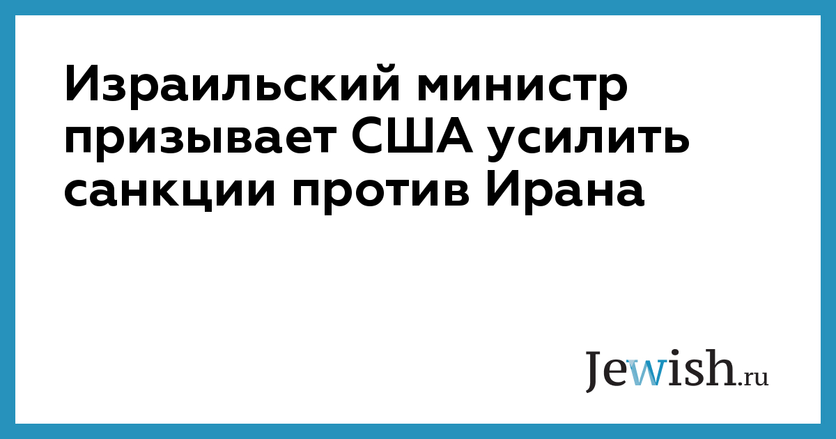 Израильский министр призывает США усилить санкции против Ирана