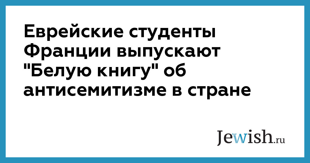 Еврейские студенты Франции выпускают "Белую книгу" об антисемитизме в стране