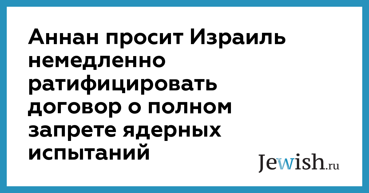 Аннан просит Израиль немедленно ратифицировать договор о полном запрете ядерных испытаний