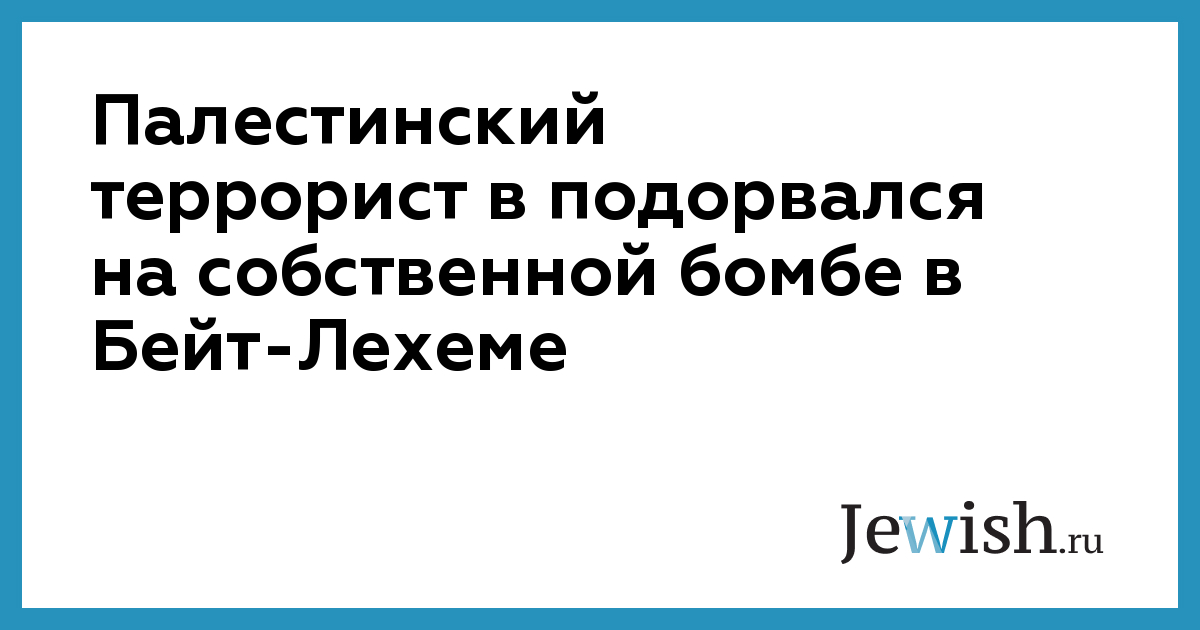 Палестинский террорист в подорвался на собственной бомбе в Бейт-Лехеме