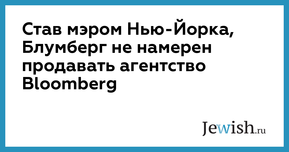Став мэром Нью-Йорка, Блумберг не намерен продавать агентство Bloomberg