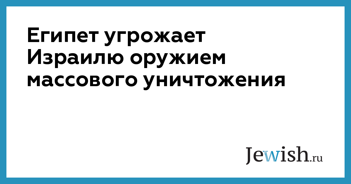 Египет угрожает Израилю оружием массового уничтожения