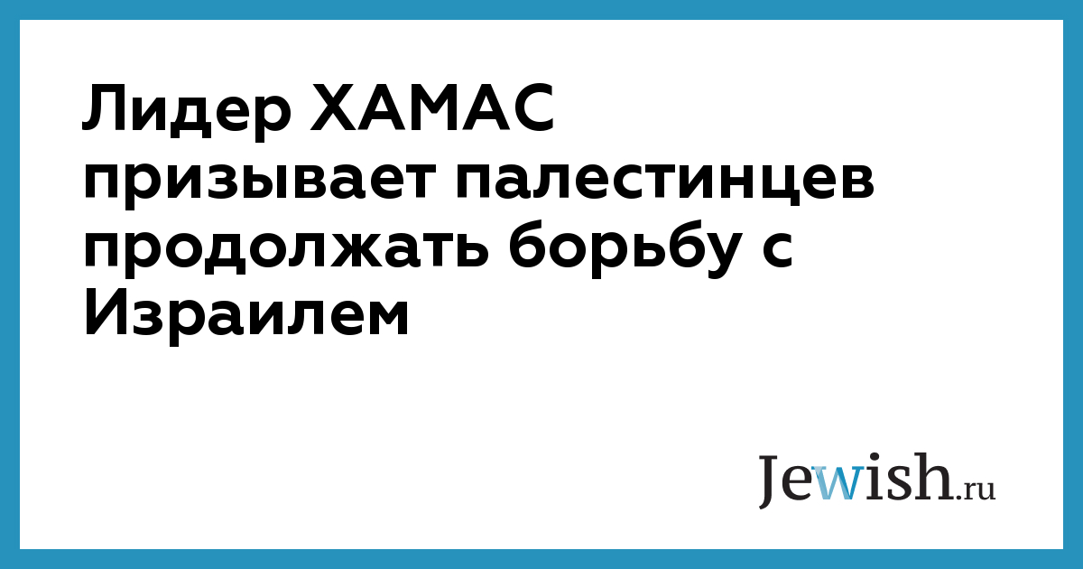 Лидер ХАМАС призывает палестинцев продолжать борьбу с Израилем