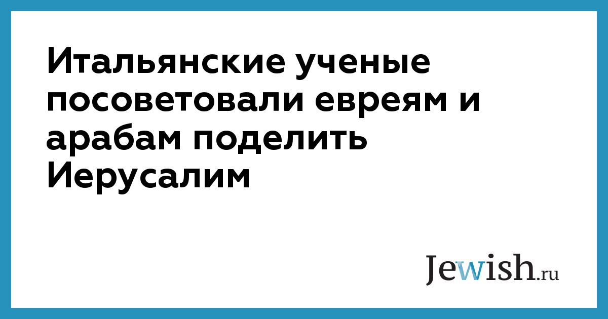 Итальянские ученые посоветовали евреям и арабам поделить Иерусалим