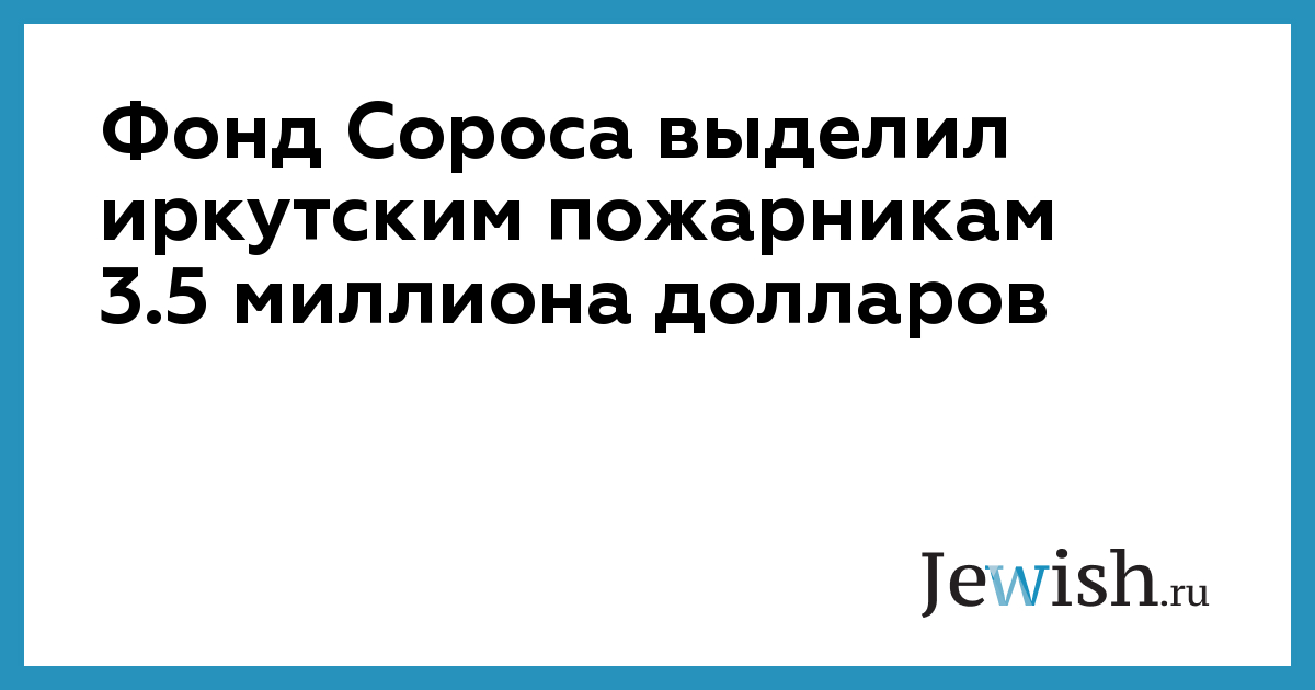 Фонд Сороса выделил иркутским пожарникам 3.5 миллиона долларов